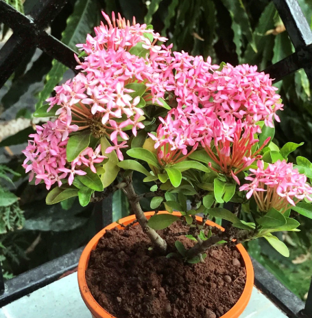 Ixora 'Pink Pixie', a dwarf tropical evergreen hybrid shrub, grows 0.6 m with slow growth in well-drained acidic soil, thrives in full sun to partial shade with moderate to high moisture, is non-edible with no medicinal benefits, and produces deep pink flower clusters year-round.