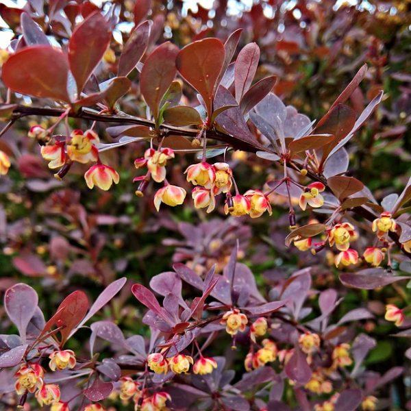 Japanese Barberry (Berberis thunbergii) is a shrub that grows 3-6 ft tall, hardy in USDA Zones 4-8, prefers well-drained soil, full sun to part shade, low to medium moisture, edible fruits, and has medicinal uses.