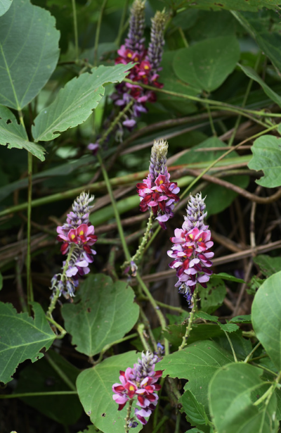 Javanese Kudzu (Pueraria javanica) is a fast-growing vine up to 20 ft, thrives in well-drained soil, full sun, high moisture, and is both edible and medicinal.
