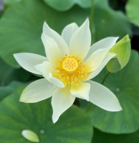 A pure white lotus, ideal for ponds with edible parts and serene aesthetics, bred for Chinese gardens.