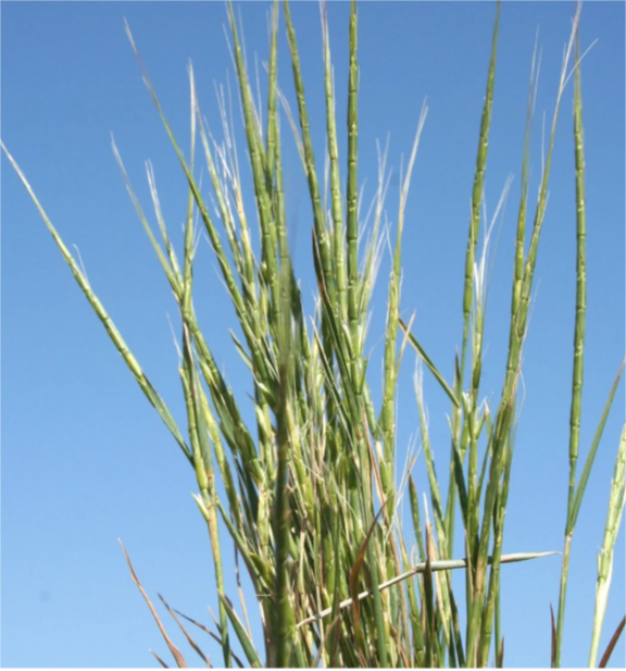 Jointed Goatgrass (Aegilops cylindrica) grows up to 3 ft, thrives in well-drained soil, full sun, low moisture, non-edible and non-medicinal.