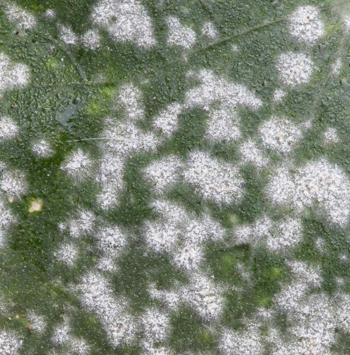 White powdery substance on leaves, young shoots, and flowers. Brown or black spots with yellow hallows on leaves.