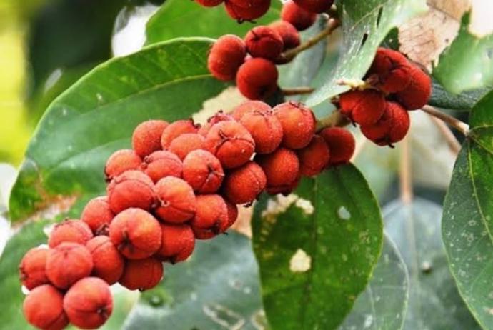 Mallotus philippensis is a plant belonging to the Euphorbiaceae family. It is called Kamala tree or Red Kamala tree or Koom tree because of its red fruit cover.