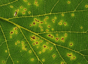Water soaked lesions on leaves, cankers on vines, bacterial ooze . Sunken lesions on bark, wilting of vines.