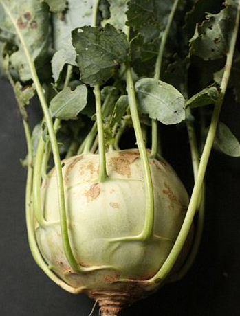 Kohlrabi microgreens (Brassica oleracea var. gongylodes), fast-growing annuals reaching 2-3 inches, grow in peat-based soil with partial shade, are edible, and provide vitamin C for immunity, native to Europe.