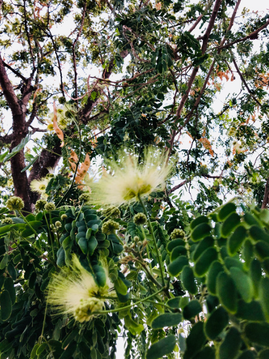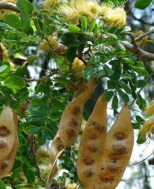 Lebbeck Tree (Albizia lebbeck) grows up to 60 ft, thrives in well-drained soil, full sun, moderate moisture, and is medicinal but not edible.