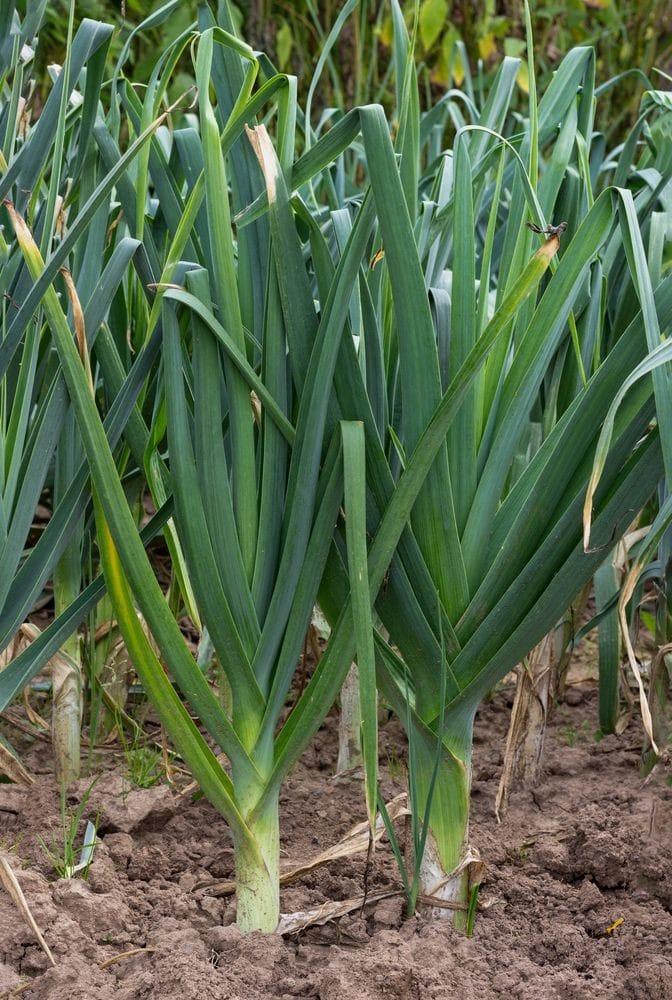 Leeks are biennials, 12-30 inches tall, and frost-tolerant. They prefer well-drained, fertile soil in full sun to partial shade. Keep the soil moist. Leeks are both edible and have medicinal properties.