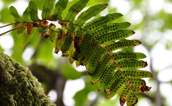 Licorice Fern (Polypodium glycyrrhiza) is a fern growing 1-2 feet tall, hardy in USDA zones 7-11, with slow growth in well-drained, loamy soil, requiring shade and medium moisture, and it is neither edible nor medicinal.