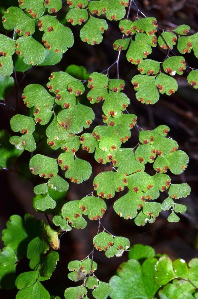 Maidenhair Fern (Adiantum spp.) is a fern growing 1-2 feet tall, hardy in USDA zones 4-9, with slow growth in moist, well-drained soil, requiring shade and high moisture, and it is neither edible nor medicinal.