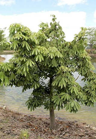 Malabar Chestnut (Pachira aquatica) is a tree growing 6-10 feet tall, hardy in USDA zones 10-11, with fast growth in moist, well-drained soil, requiring bright, indirect light and high moisture, and it is neither edible nor medicinal.