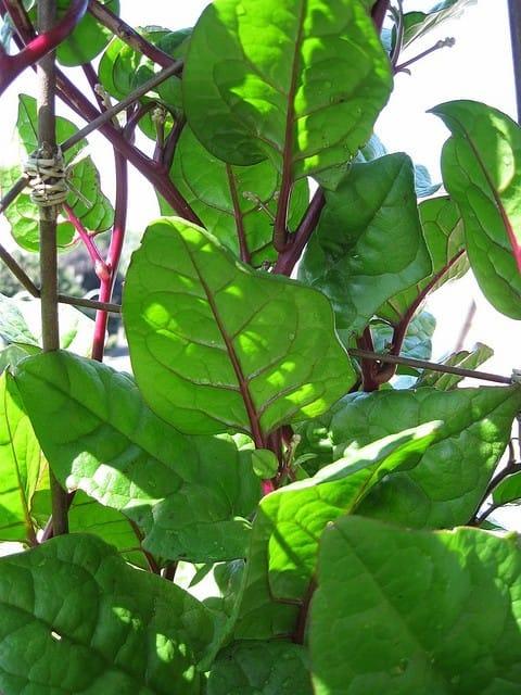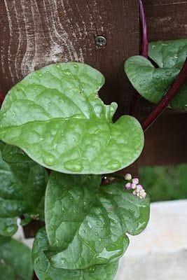 Malabar spinach is a climbing plant that can reach 1.8 to 3 meters in height under optimal growing conditions. Produces long trailing stems that can be trained to climb trellises, fences, or other supporting structures.