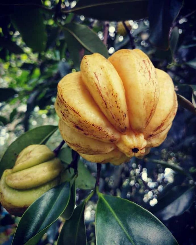 Garcinia gummi-gutta, or Malabar Tamarind, is a hardy tree growing 5-10m, prefers loamy, well-drained soil, partial shade, and has edible and medicinal properties.