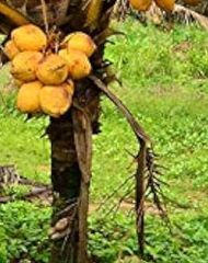 The Malayan Dwarf Coconut is a palm with slow growth, requiring well-draining sandy soil and full sun exposure. Its fruit is edible, and it has medicinal uses in traditional practices for its oil, water, and husk.