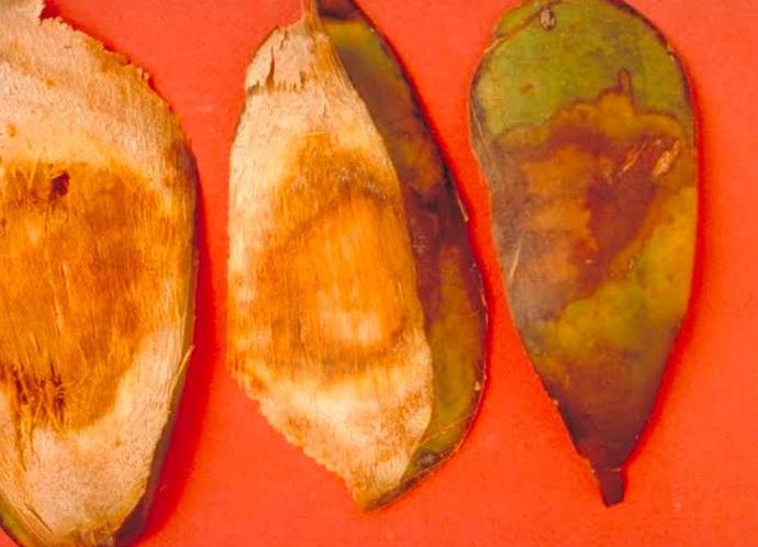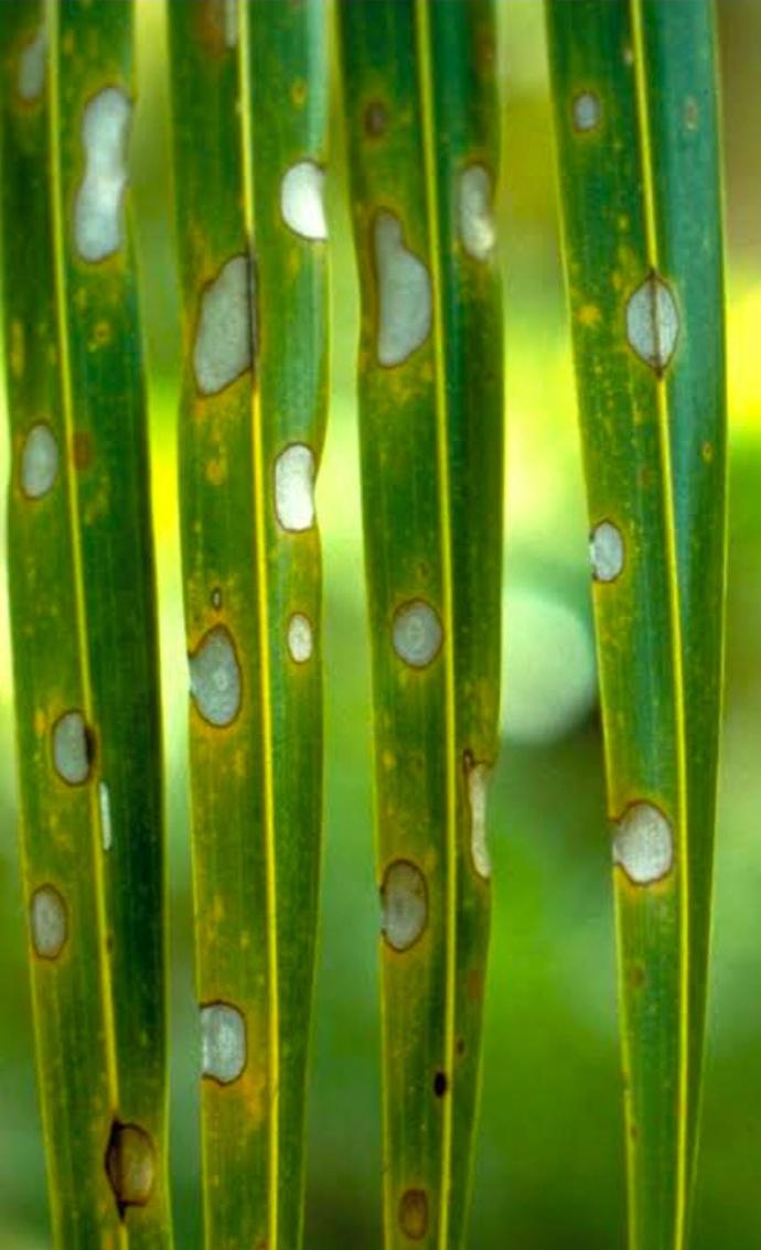 Spindle shaped drops down on leaves causes dropping of successive leaves .