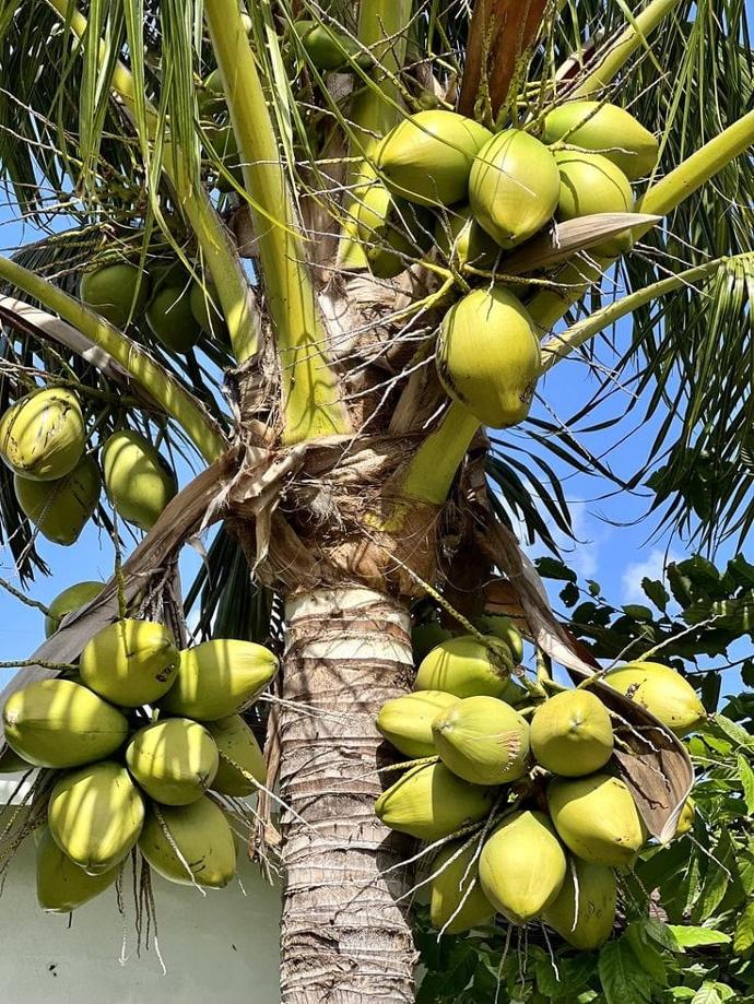 Deficiency of essential nutrients such as nitrogen, potassium, and magnesium can lead to yellowing of leaves, stunted growth, and reduced fruit production. Regular fertilization will help. The most common pests that attack palm plants include palm mites, beetles, and caterpillars, which can cause damage to leaves, stems, and fruit. Appropriate pesticide application. Coconut trees are susceptible to diseases such as deadly yellowing, root rot, and leaf blight that can cause the plant to wilt, turn yellow, and eventually die. Good hygiene practices, such as removing infected plant material and using disease-resistant varieties, can help prevent the spread of disease. Introducing natural enemies can help control pest populations.