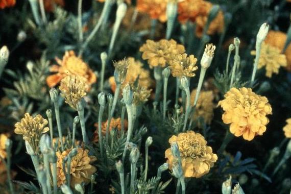 Signet marigold has small, delicate leaves and clusters of small single flowers. Often used as a border plant or container.