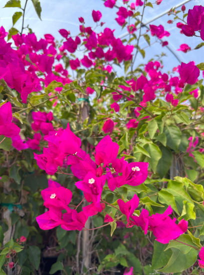 Vibrant hot pink bracts, vigorous vine, ideal for trellises or fences.