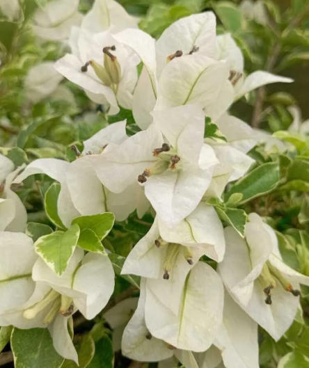 Dwarf, nearly thornless, white bracts, ideal for pots.