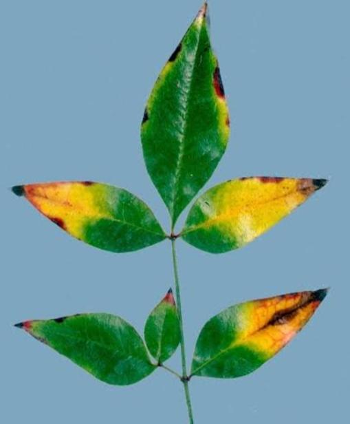 Yellowing, black or brown spots on leaves, powdery coating, wilting