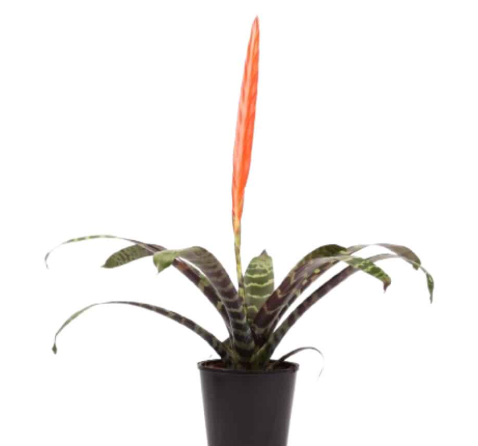 A small, tank bromeliad with a striking flat, pink and yellow flower spike, grown for its long-lasting bloom and architectural form as a tropical ornamental.