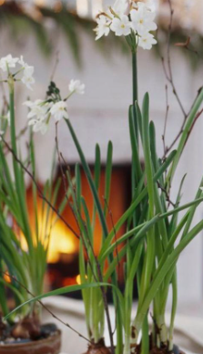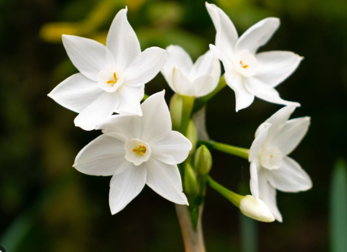 Paperwhite Narcissus (Narcissus papyraceus) is a bulb growing 12-18 inches tall, hardy in USDA zones 8-11, with moderate growth in well-drained, loamy soil, requiring full sun and medium moisture, and it is neither edible nor medicinal.