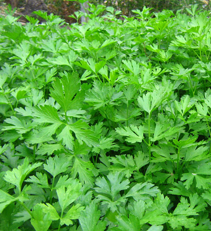 Parsley microgreens (Petroselinum crispum), moderate-growing annuals up to 2-3 inches, thrive in peat-based soil with partial shade, are edible, and provide vitamin C for immunity, native to the Mediterranean.
