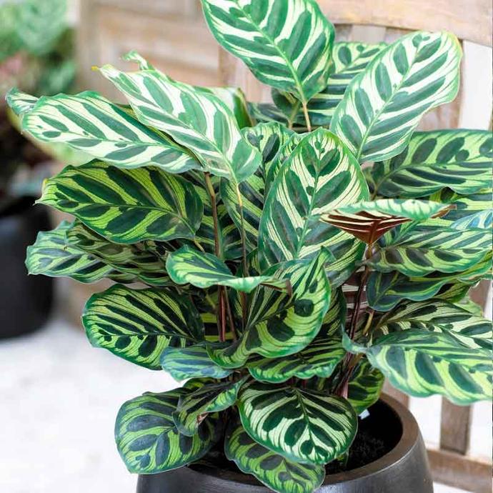 Peacock Plant (Calathea makoyana) is an herbaceous plant growing 12-24 inches tall, hardy in USDA zones 10-11, with moderate growth in well-drained, rich soil, requiring indirect light and medium moisture, and it is neither edible nor medicinal.