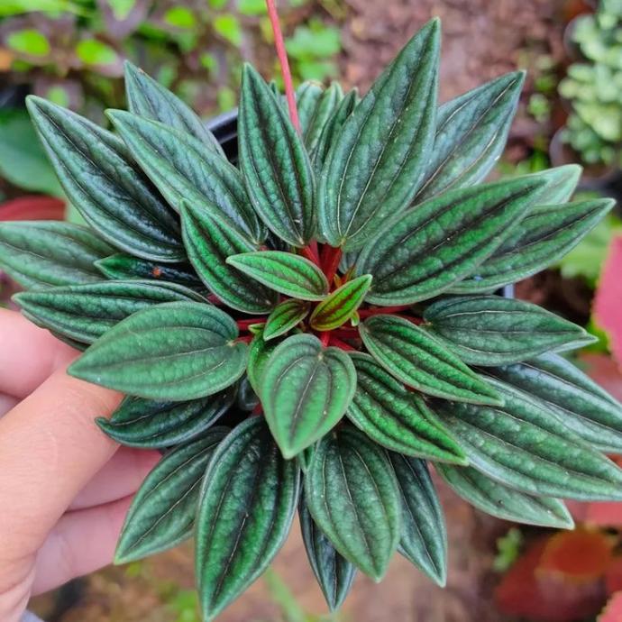| Peperomia Rosso is an ornamental plant with striking red and green leaves. It thrives in well-draining, slightly acidic soil with moderate light. It does not have any significant edible or medicinal uses. |