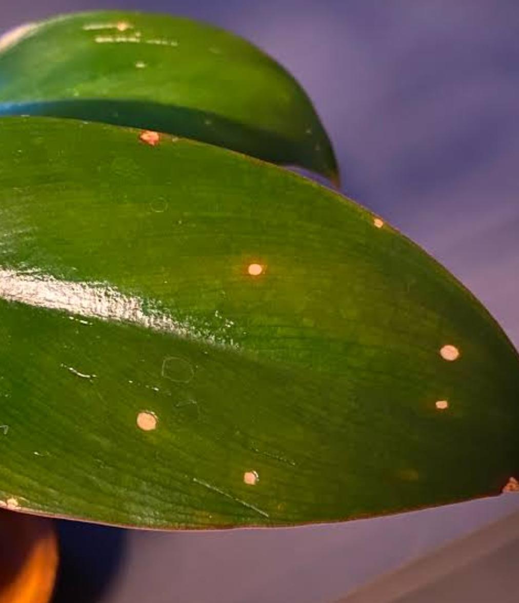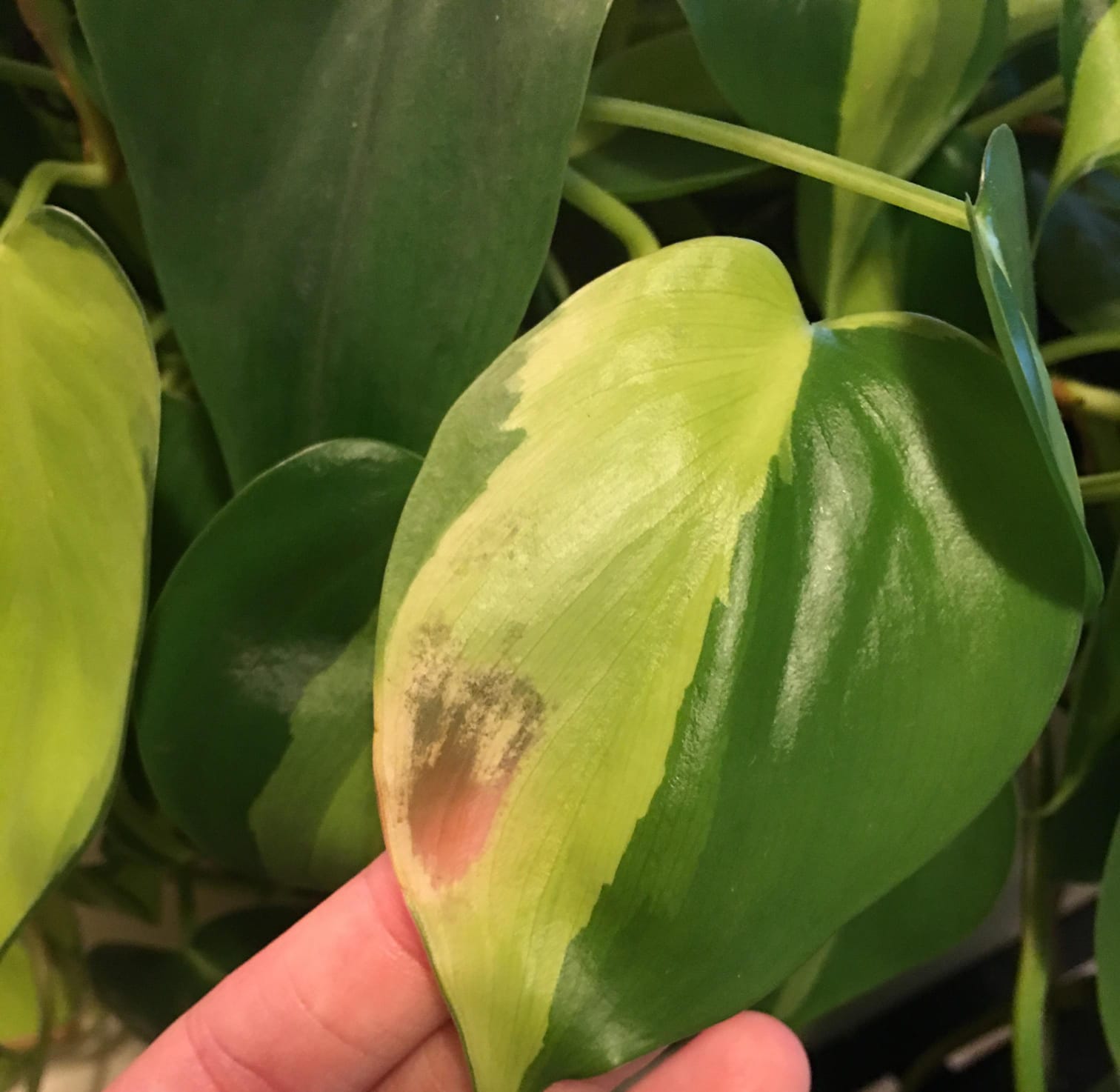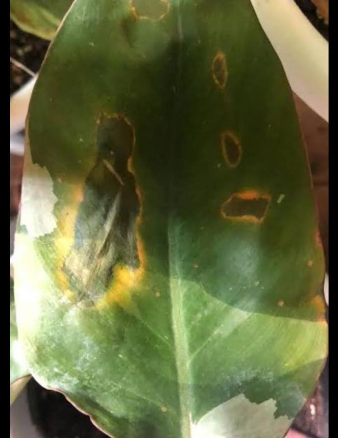 Caused by poorly drained soil mix or frequent watering. Symptoms include yellowing, browning, and falling leaves. Caused by Erwinia spp. . Symptoms include the appearance of small, wet spots on the leaves. Dark green to brown spots appear between the leaf veins.