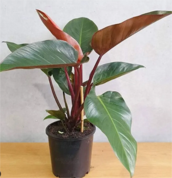 | Known for its striking red stems, this Philodendron thrives in full sun and loamy soil. It’s primarily ornamental and does not have edible or medicinal uses. |