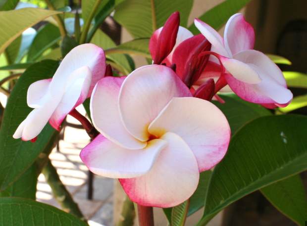 Pink Pansy (Plumeria rubra 'Pink Pansy'), a deciduous tropical shrub/tree, grows 2.4-4.8 m with moderate growth in well-drained sandy soil, thrives in full sun with moderate moisture, is non-edible with no medicinal benefits, and produces 3-3.5 inch hot pink flowers with yellow centers and a sweet fragrance in summer-fall.