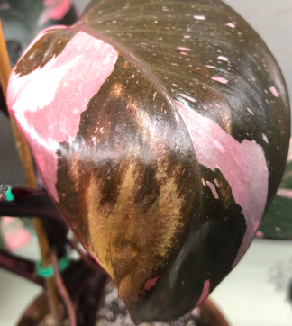 Pink variegated leaves, ideal for collectors, pet-toxic.