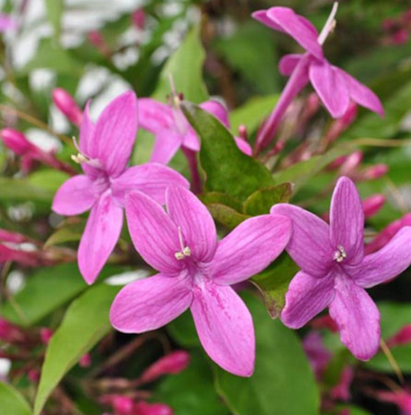 Double pink flowers, fragrant, ideal for pots or gardens.