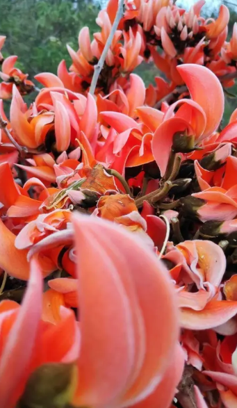 Pinkish Palash (Butea monosperma 'Pinkish'), a deciduous tree, grows 10-15 m with slow growth in well-drained sandy-loam soil, thrives in full sun with low moisture, is non-edible with medicinal benefits, and produces 2.5 cm pink-tinged flowers in Feb-Apr.