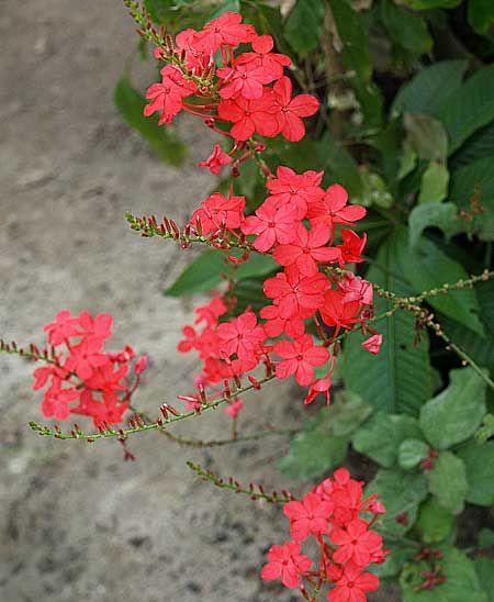 Plumbago Rosea, also known as Rakthakeli, is an outdoor flowering shrub. Plant in well-draining soil with full sun exposure. Water consistently and prune to shape the shrub. Fertilize during the growing season for optimal flower production. Mulch to retain moisture.