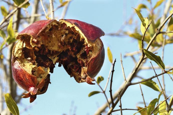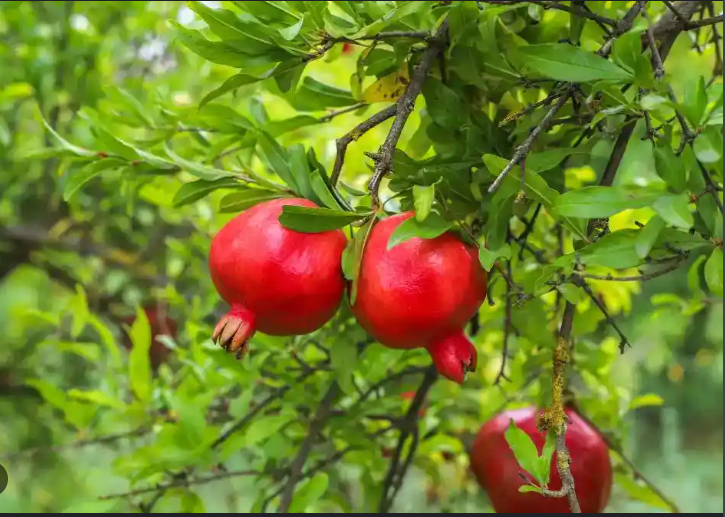 Pomegranate (Punica granatum) is a shrub/tree that grows 6-20 ft tall, hardy in USDA Zones 7-10, prefers well-drained, loamy soil, full sun, medium moisture, is edible, and has medicinal uses.