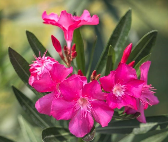 Professor Granel (Nerium oleander 'Professor Granel'), a Mediterranean evergreen shrub, grows 1.8-2.4 m with moderate growth in well-drained sandy-loam, thrives in full sun with low to moderate moisture, is non-edible and toxic with no medicinal benefits, and produces single pink or red flowers in summer.