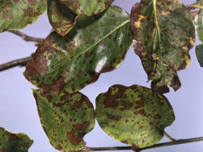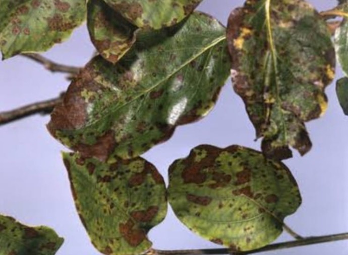 Irregular brown spots, often beginning on the leaf margins, circular , dark brown and sunken spots in leaves.