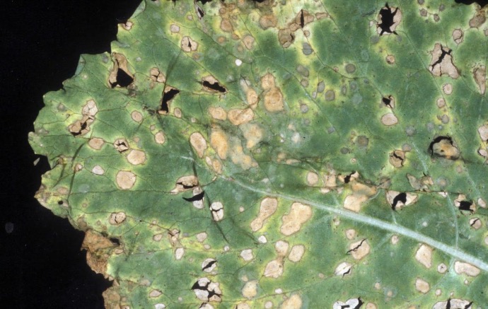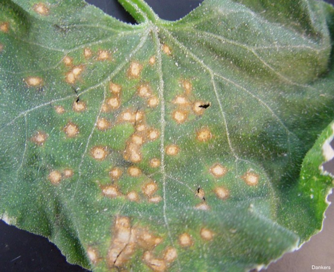 dark, sunken spots appear on leaves