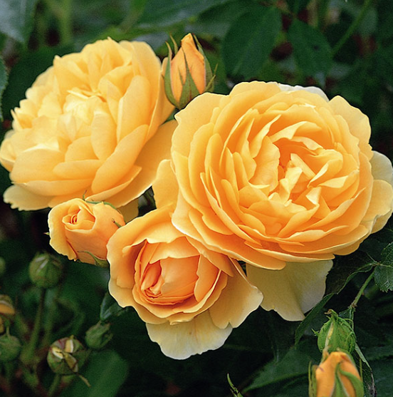 Rosa 'Graham Thomas', a David Austin shrub introduced in 1983, grows 1.2-1.5 m with a bushy habit, bearing deep yellow, double, cup-shaped flowers with a strong tea-rose fragrance from summer to autumn. Named after the famed horticulturist, it adds vibrant elegance to temperate gardens without medicinal benefits.