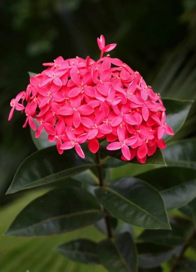 Rose Glow (Ixora 'Rose Glow'), a tropical evergreen hybrid shrub, grows 1.2-1.8 m with moderate growth in well-drained acidic soil, thrives in full sun with moderate to high moisture, is non-edible with no medicinal benefits, and produces rose-pink flower clusters year-round.