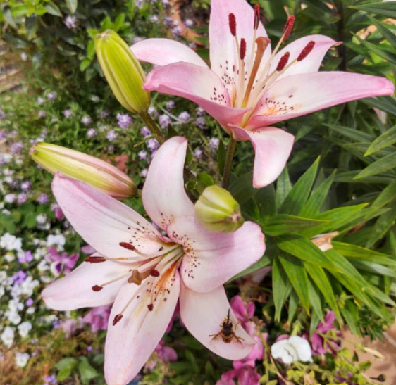 Rosella’s Dream (Lilium 'Rosella’s Dream'), a fast-growing Asiatic lily hybrid, grows 0.6-1 m in loamy soil under full sun to part shade, yielding 4-10 creamy-pink flowers with brown freckles in early to mid-summer with no edible or medicinal use.
