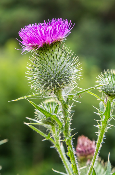 Russian Thistle (Salsola tragus) grows up to 3 ft, thrives in well-drained soil, full sun, low moisture, and is neither edible nor medicinal.