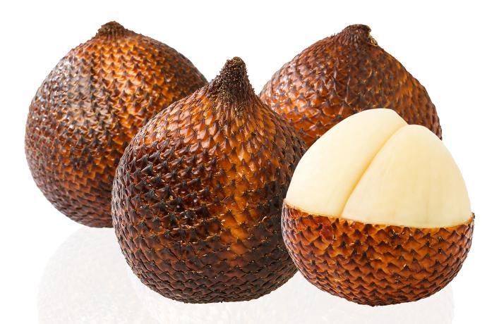 Salacca fruit, also known as snake fruit, grows on the palm tree called salak. It is also called "fruit-bearer" because of its red-brown scaly bark.