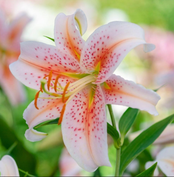 Salmon Star (Lilium 'Salmon Star'), a moderately growing Oriental lily hybrid, grows 0.9-1.2 m in loamy soil under full sun to part shade, producing 5-12 fragrant salmon-pink flowers with coral stripes in mid to late summer with no edible or medicinal value.
