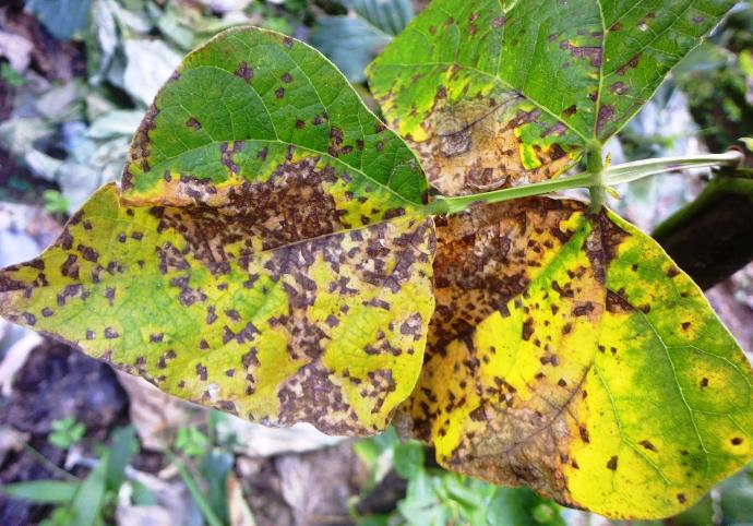 Brown spots on leaves, White powdery growth on leaves, Wilting and Stunted Growth.