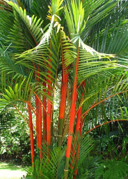Cyrtostachys renda, or Sealing Wax Palm, is a moderate-growing palm, 10-20 ft tall, prefers well-drained soil, full sun, medium moisture, not edible, and no medicinal uses.