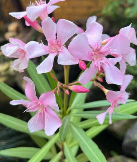 Sealy Burgundy (Nerium oleander 'Sealy Burgundy'), a Mediterranean evergreen shrub, grows 1.8-2.4 m with vigorous growth in well-drained sandy-loam, thrives in full sun with low to moderate moisture, is non-edible and toxic with no medicinal benefits, and produces single burgundy-colored flowers in summer.