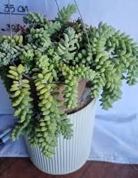 The Hanging Sedum is a stunning trailing succulent plant with rope-like leaves. Perfect for hanging baskets or as a trailing accent, it thrives in bright indirect light and requires minimal watering.