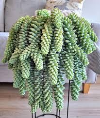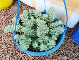 Sedum morganianum (Burro's Tail or Donkey Tail): This variety has long, trailing stems covered with plump, blue-green leaves. It's often grown in hanging baskets or tall containers to showcase its trailing habit.